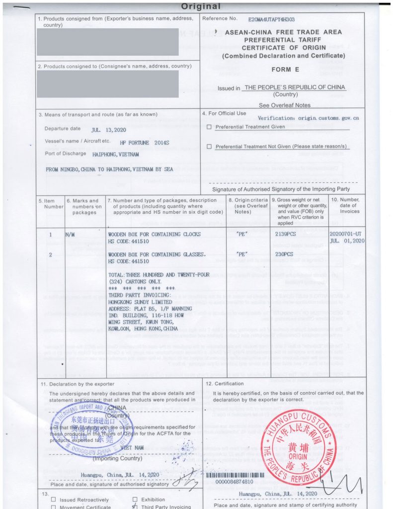 Giấy chứng nhận xuất xứ/ Certificate of Origin