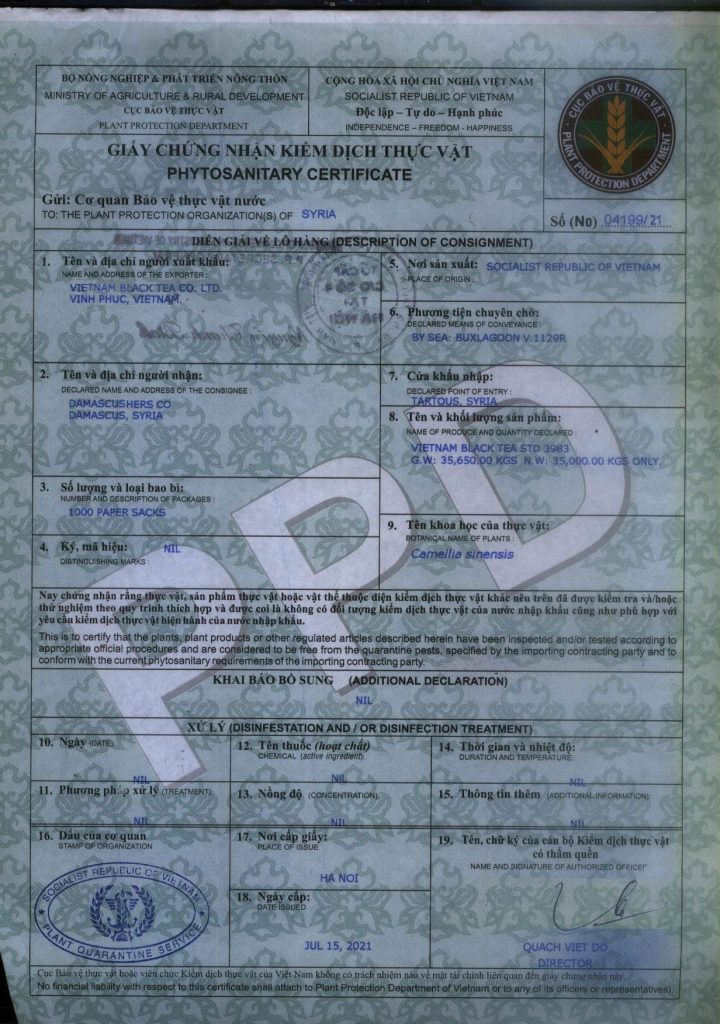Giấy kiểm dịch thực vật/ Phytosantary Certificate (Phyto)
