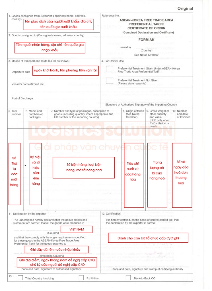 Dưới đây là thông tin chi tiết hướng dẫn kê khai C/O form VK/AK